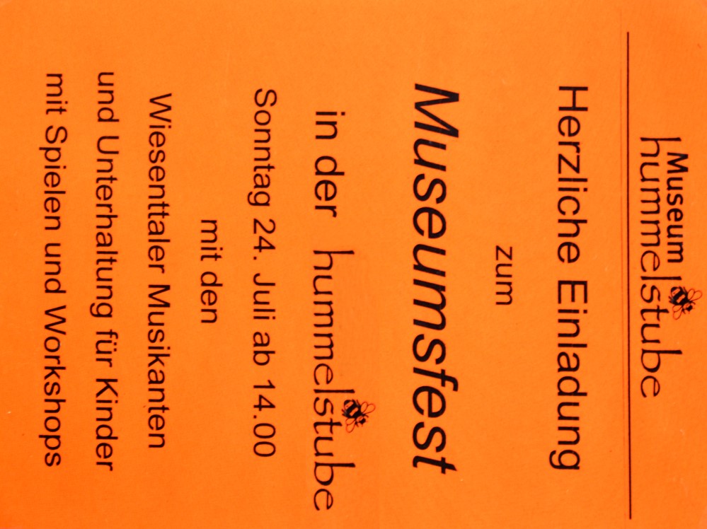 Herzlich Willkommen! Es ist wieder soweit: unser Nuseumsfest 2022 startet: Sonntag, 24. Juli 2022 ab 14:00 Uhr. Unser Programm: Wiesenttaler Musikanten - Unterhaltung fuer Kinder mit Spielen und Workshops. Wir freuen uns auf Ihren Besuch.